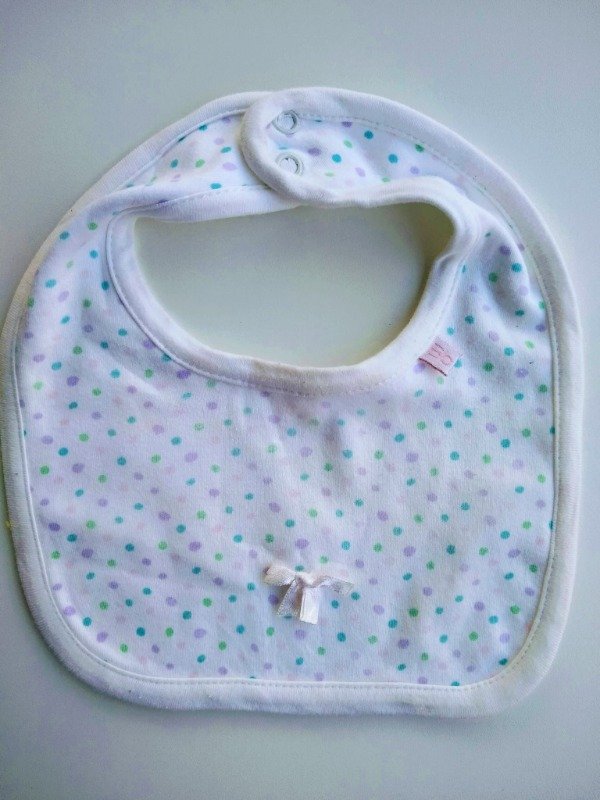 Babero de algodón blanco con lunares. USADO, muy buen estado