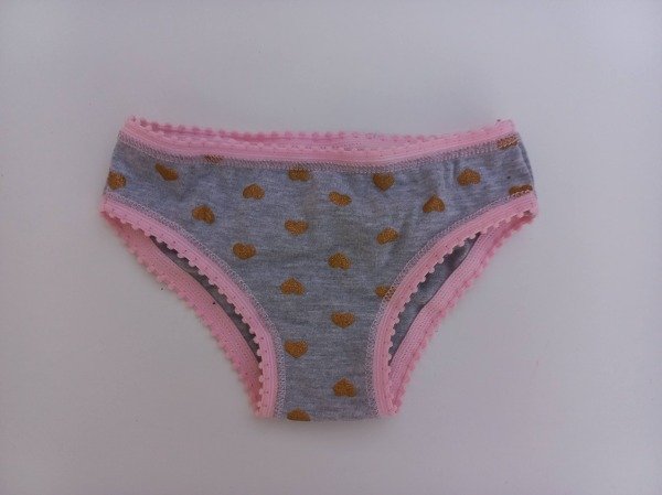 Bombacha de algodón color gris melange con corazones dorados. NUEVO SIN ETIQUETA