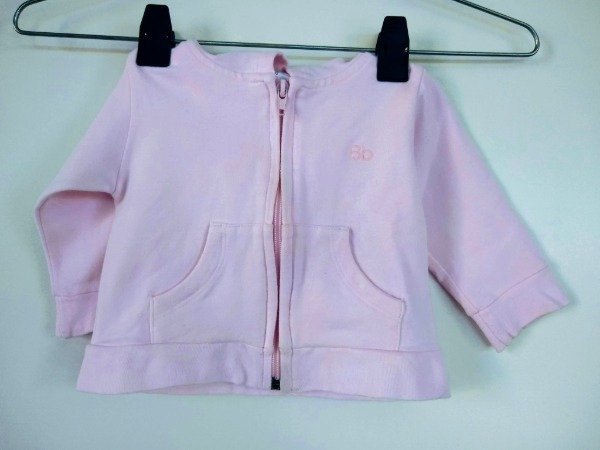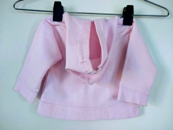Campera de algodon con capucha. Talle M (6-9 meses). Medidas: ancho de hombro 21 cm, largo manga 21 cm, largo total 27 cm. USADO