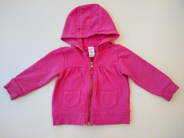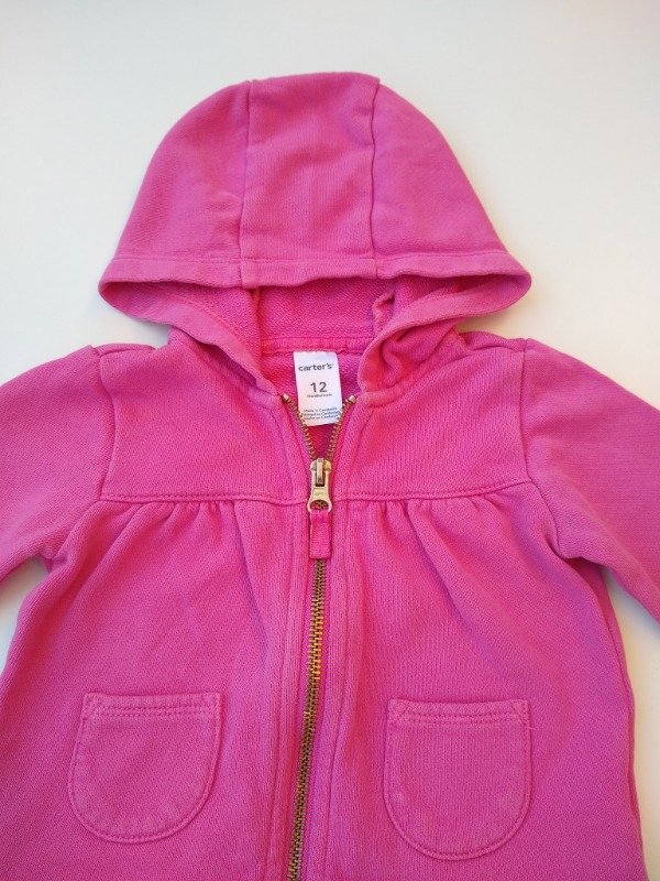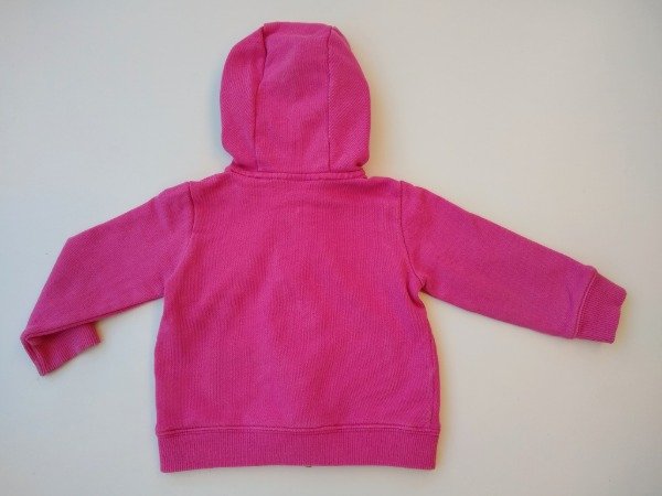 Campera de algodón rústico color rosa. Tiene capucha y bolsillos al frente. Medidas: ancho de hombro 22 cm, largo de manga 26,5 cm, largo total 30,5 cm. USADO, muy buen estado