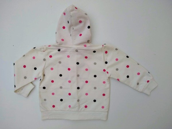 Campera de algodón rústico con capucha. Medidas: ancho de hombro 27 cm, largo de manga 30 cm, largo total 34 cm. NUEVO SIN ETIQUETA