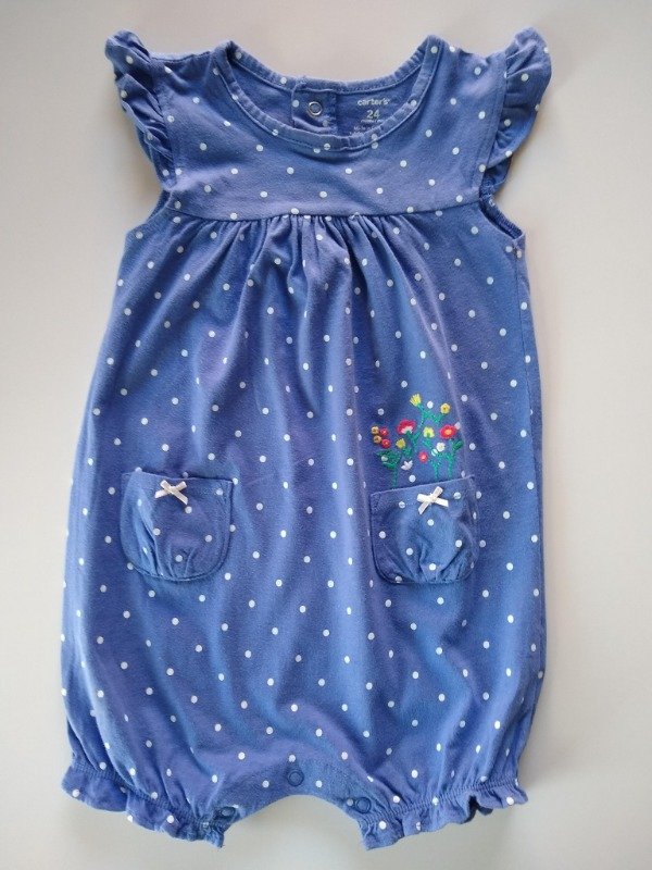 Enterito corto de algodón sin mangas con broches en la entrepierna y en la espalda. Medidas: ancho de hombro 25 cm, largo total 49 cm. USADO, excelente estado