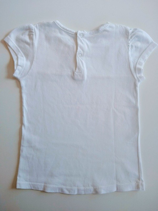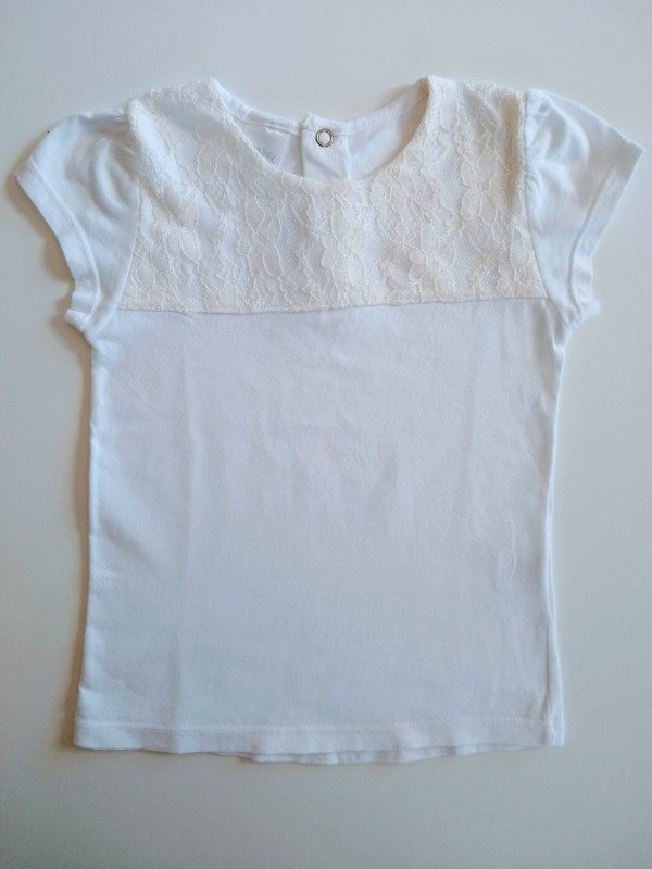 Remera manga corta de algodón con aplique de encaje en el pecho. Medidas: ancho de hombro 21 cm, largo 36 cm. COMO NUEVO