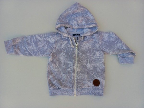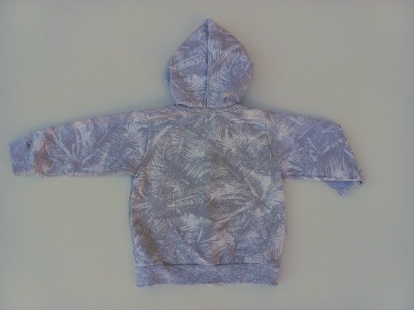 Campera de algodón rústico estampado. Tiene capucha y bolsillos canguro. Talle XXL (15-18 meses). USADO, buen estado