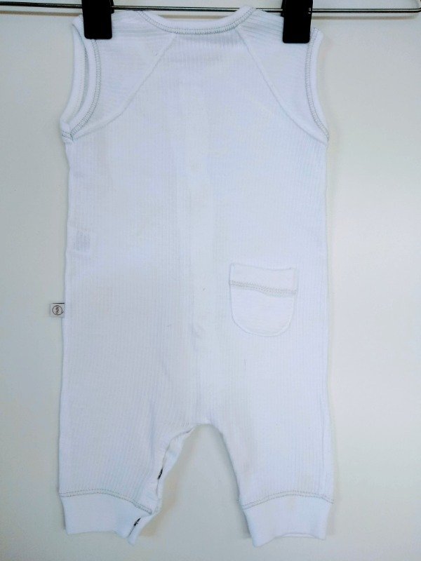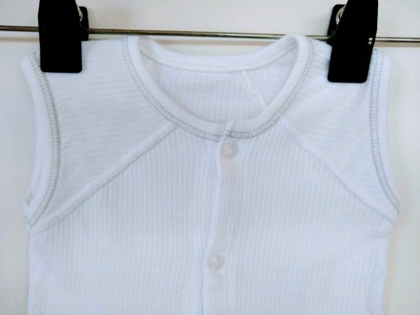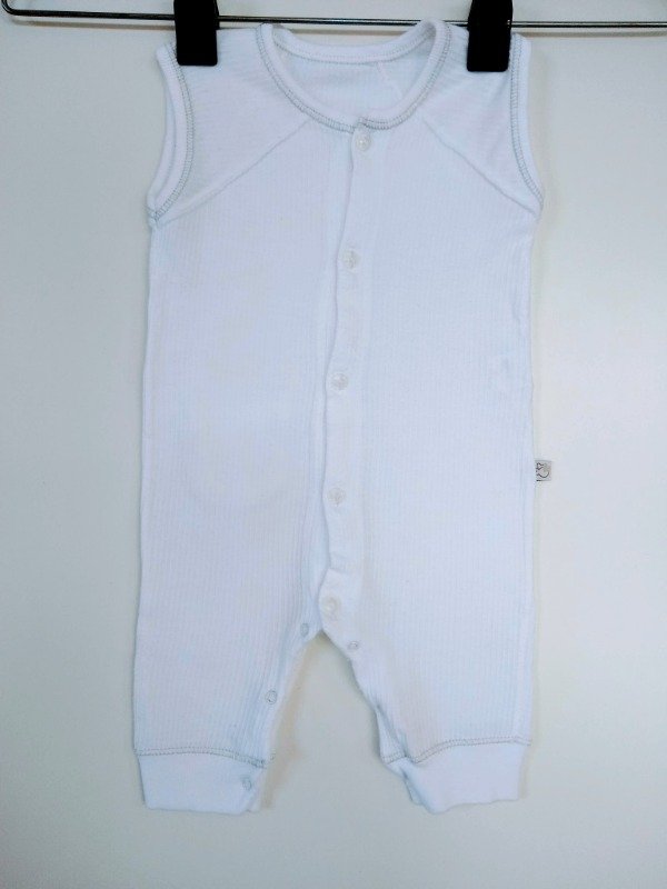 Enterito de algodón color blanco con botones en el frente y en la entrepierna. Talle L. Largo total 47 cm. USADO