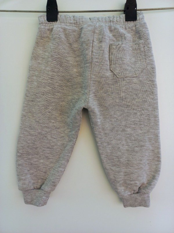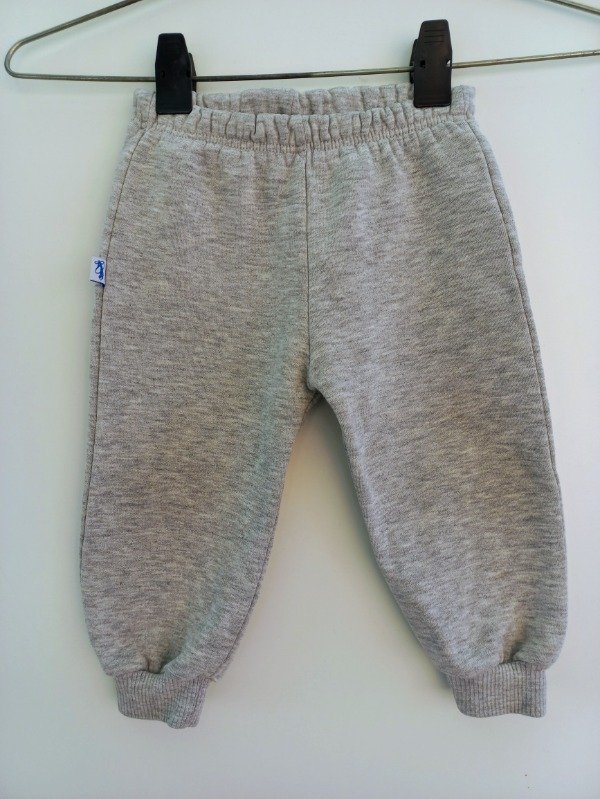 Pantalón babucha de algodón con friza color gris melange. Medidas: cintura 19 cm, largo 42 cm. USADO, excelente estado