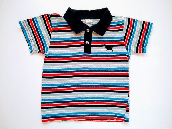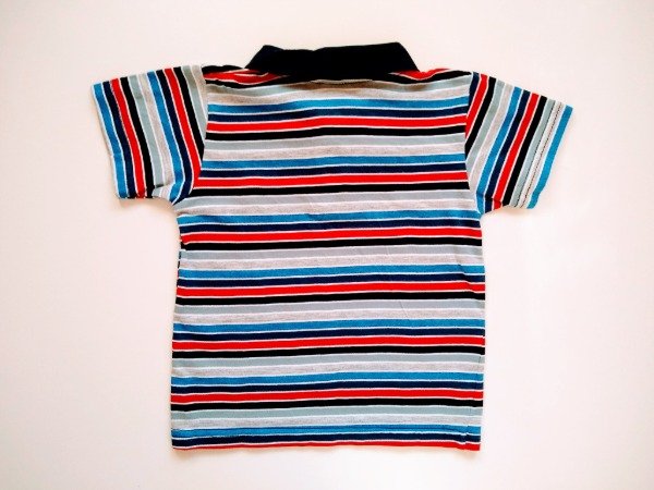 Chomba de algodón manga corta rallada. Medidas: ancho de hombro 24,5 cm, largo 35,5. COMO NUEVO