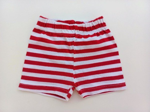 Short de algodón rayado rojo y blanco. Tiene elástico en la cintura. Talle S (3-6 meses). Medidas: cintura 16 cm, largo 18 cm. COMO NUEVO