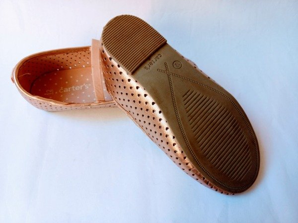 Balerinas doradas con calado corazones. Tiene elástico contenedor. Plantilla interna 18 cm. COMO NUEVO