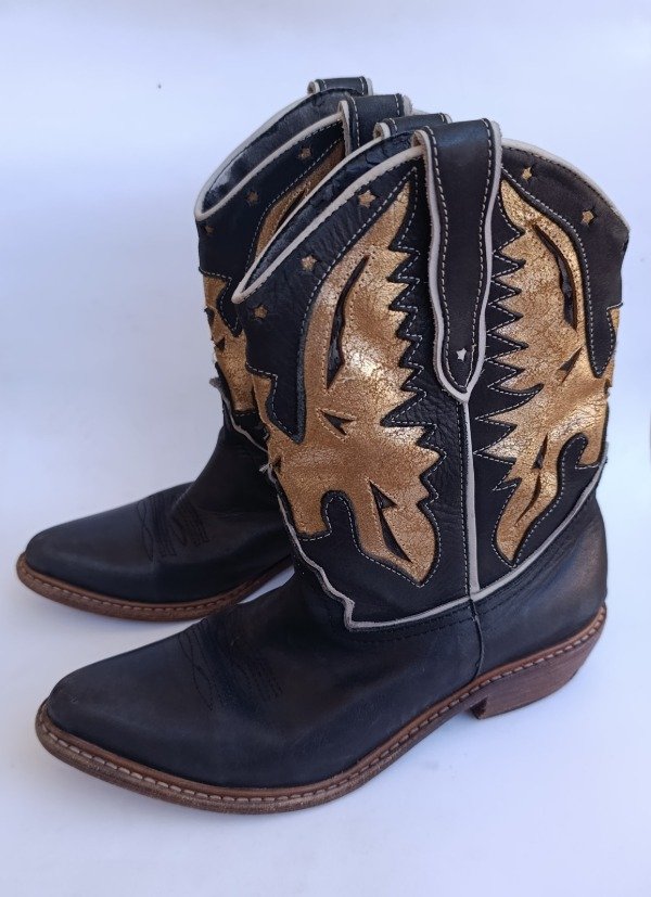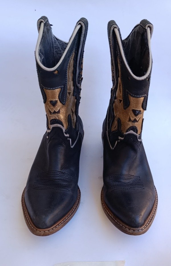 Botas texanas de cuero combinado negro y dorado. Plantilla interna 23 cm. USADO