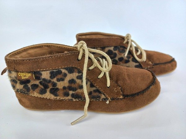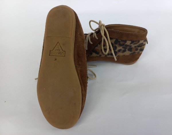 Botitas acordonadas de cuerno descarne color marrón combinadas con piel sintética animal print. Plantilla interna 17,5 cm. USADO, excelente estado