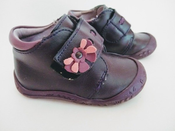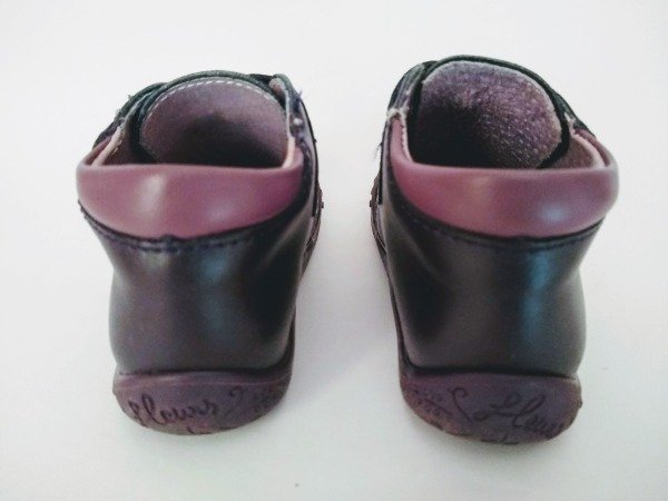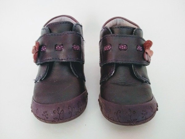Botitas de cuero, cierre con abrojo, detalle de flor de cuero. Plantilla interna 13,5 cm. COMO NUEVO
