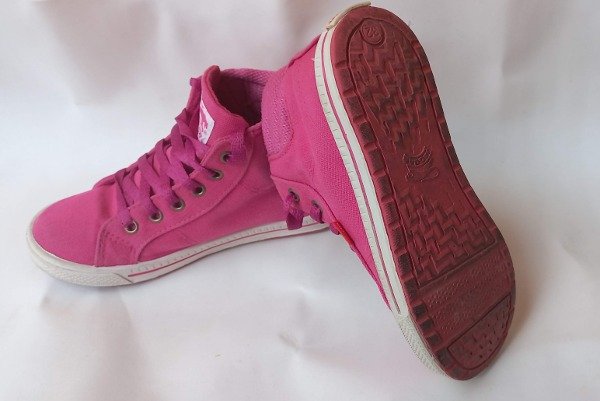 Botitas de lona acordonadas en color rosa. Plantilla interna 21 cm. COMO NUEVO