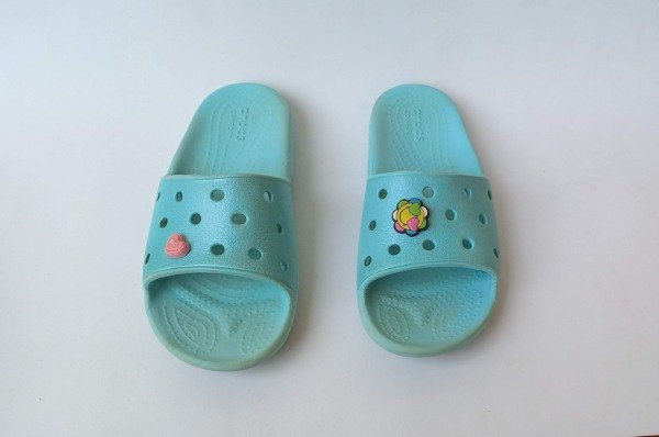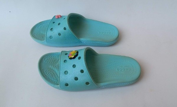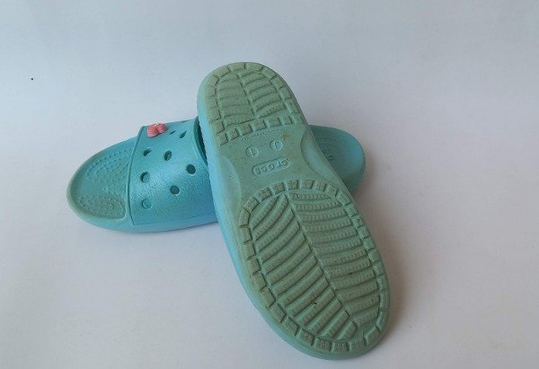 Chinela gomón en color celeste. Talle J1. Medida plantilla 22 cm. USADO, buen estado