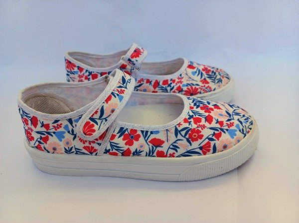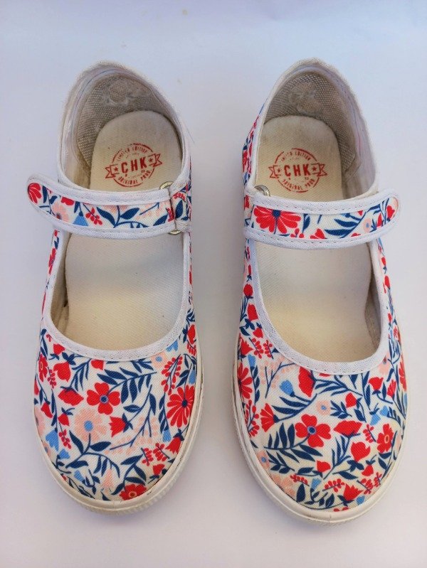 Guillerminas de lona estampada. Plantilla interna 21 cm. USADO, buen estado