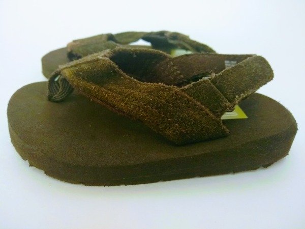 Ojotas marrones de gamuza, se regula con abrojo. Plantilla interna 14,5 cm. NUEVO SIN ETIQUETA