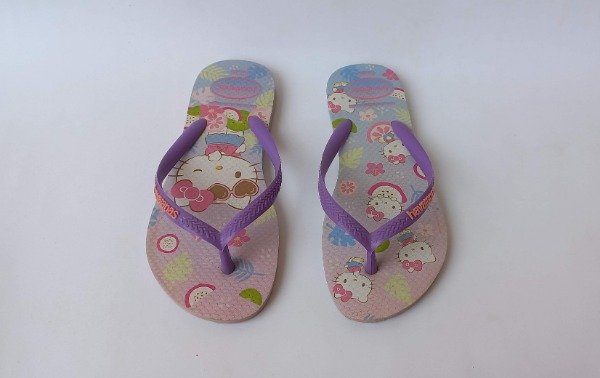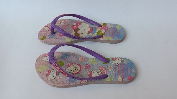 Ojotas de goma en color lila linea Kitty. Talle 33-34. Plantilla interna 21,5 cm. COMO NUEVO
