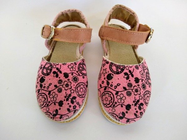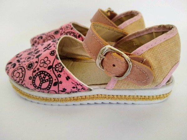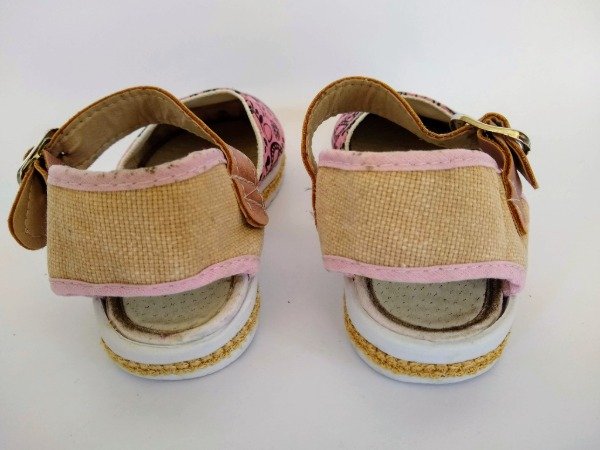 Sandalias de lona estampada, con suela de goma y plataforma de yute. Plantilla interna 17,5 cm. USADO