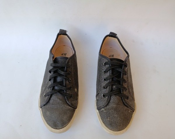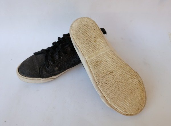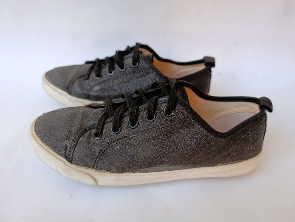 Zapatillas de lona en color negro con brillo. Tiene cordones elásticos. Plantilla interna 21 cm. USADO
