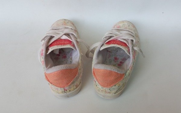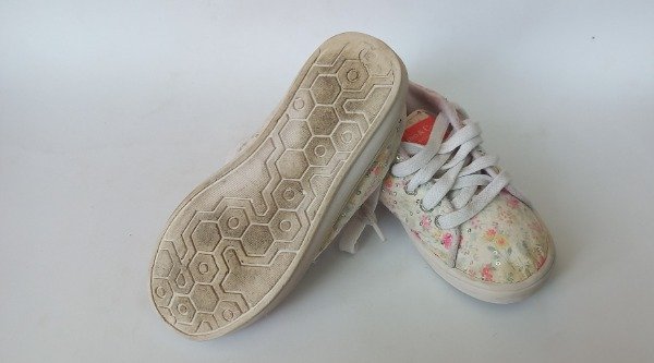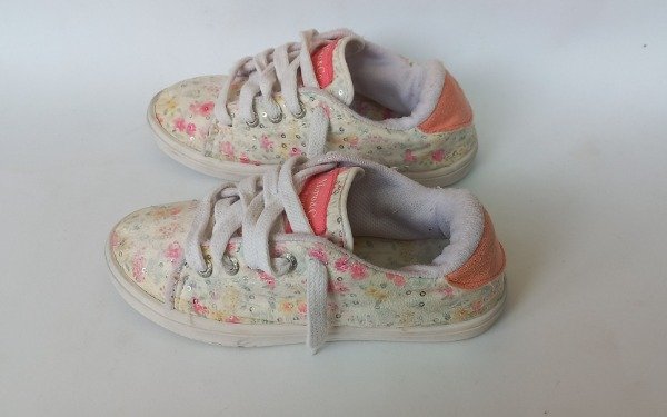 Zapatillas acordonadas estampadas con lentejuelas. Plantilla interna 20 cm. USADO, buen estado