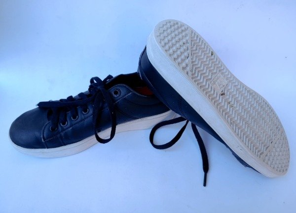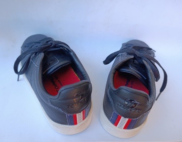 Zapatillas acordonadas de cuero sintetico en color negro. Plantilla interna 23 cm. USADO, buen estado