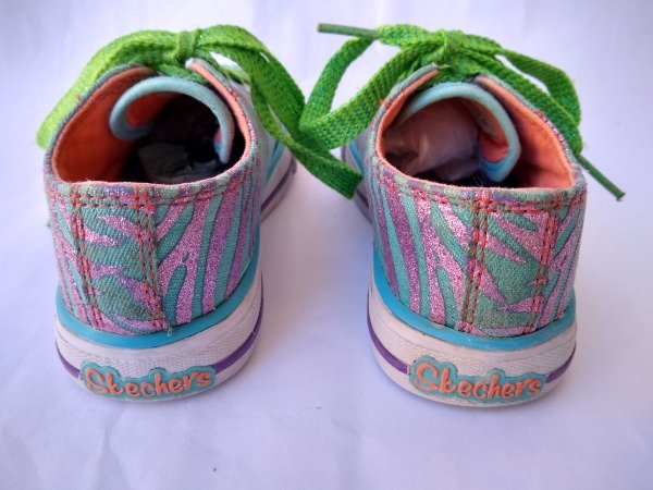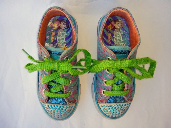 Zapatillas urbanas de lona con brillos y lentejuelas. Tienen luces en la puntera que se activan al pisar. Plantilla interna 16,5 cm. USADO, si bien le faltan algunas tachas en la puntera las luces andan perfectamente.