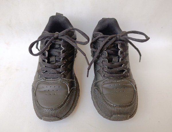 Zapatillas acordonadas de cuerina en color negro. Plantilla interna 19,5 cm. COMO NUEVO