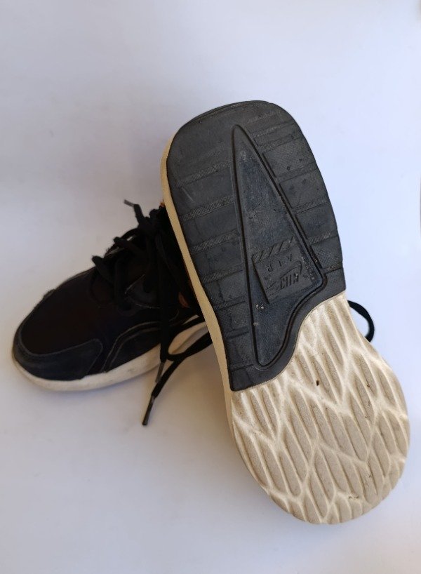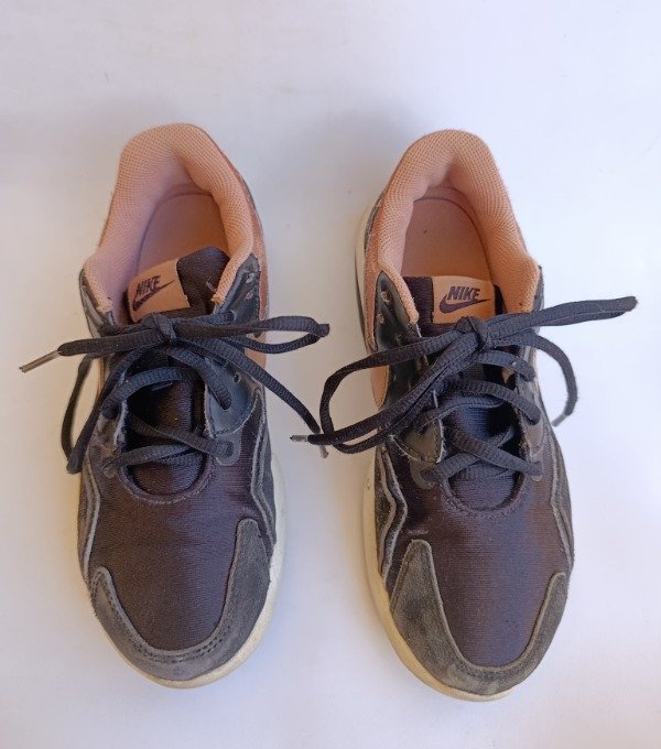 Zapatillas acordonadas en color negro con detalles en color salmón. Plantilla interna 23,5 cm. USADO, buen estado