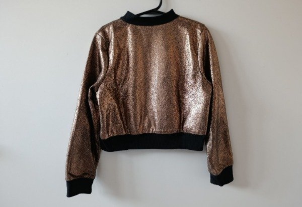 Campera tipo bomber en color ocre brilloso. Forrada en su interior en seda. Talle 7-8 años. Medidas: ancho de hombro 29 cm, largo de manga 45 cm, largo total 37,5 cm. USADO, buen estado
