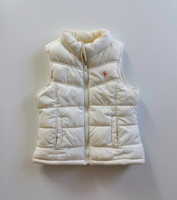 Chaleco de abrigo color blanco, forrado en polar. Talle 6-7 años. Medidas: ancho de sisa a sisa 37 cm, largo 45 cm. COMO NUEVO