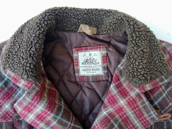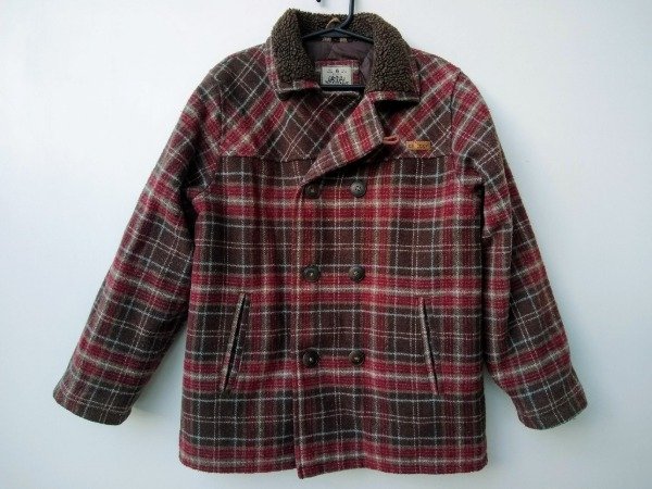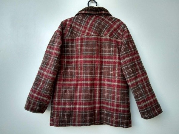 Saco de paño a cuadros. Interior matelaseado y detalle de corderito en el cuello. Prende con cierre y botones. Medidas: ancho de hombro 34 cm, largo de manga 45 cm, largo total 54,5 cm. USADO