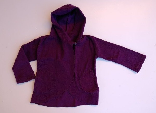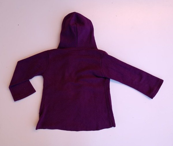 Saquito de polar en color uva. Prende con un botón en la parte superior y tiene bolsillos externos al frente. Medidas: ancho de hombro 37,5 cm, largo de manga 42,5 cm, largo total 51 cm. USADO, buen estado