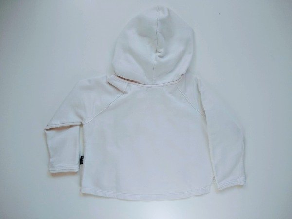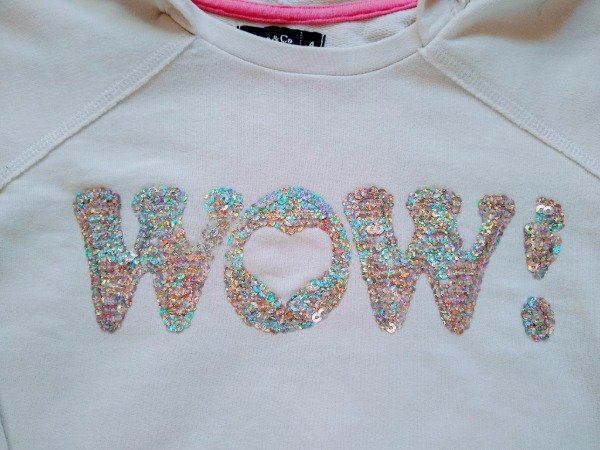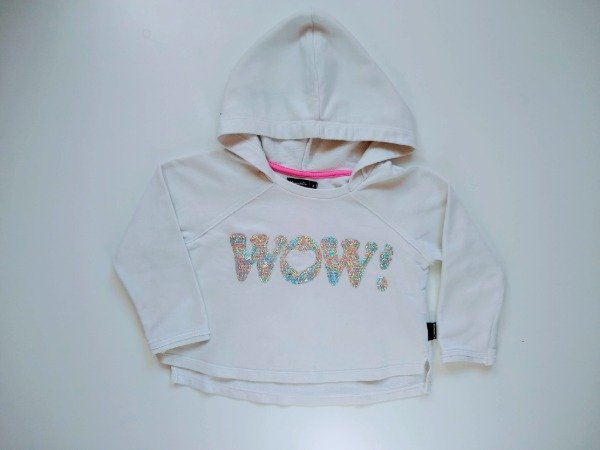 Buzo pupero de algodon sin friza, color blanco con estampa de lentejuelas. Medidas: ancho de hombro 37 cm, largo manga 29 cm, largo total 35 cm. USADO