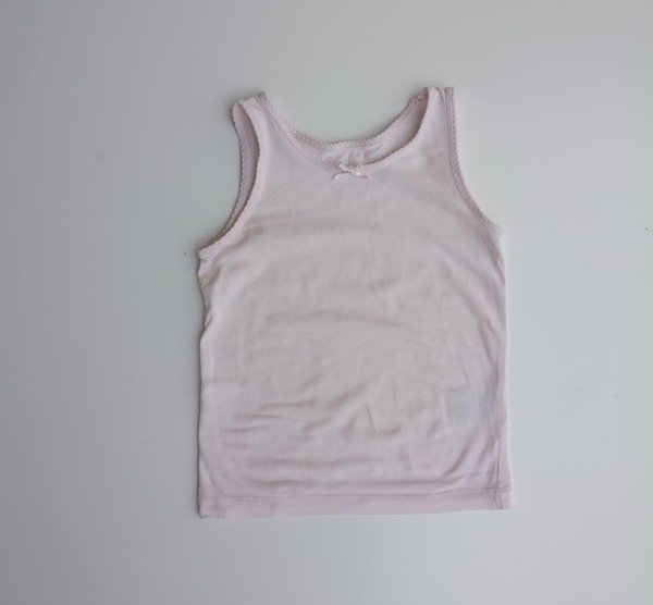 Musculosa de algodón en color rosado. Talle 2-4 años. Medidas: ancho de sisa a sisa 29 cm, largo 39 cm. USADO, buen estado