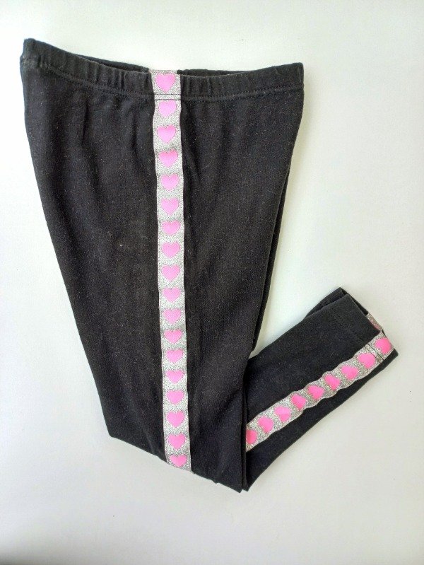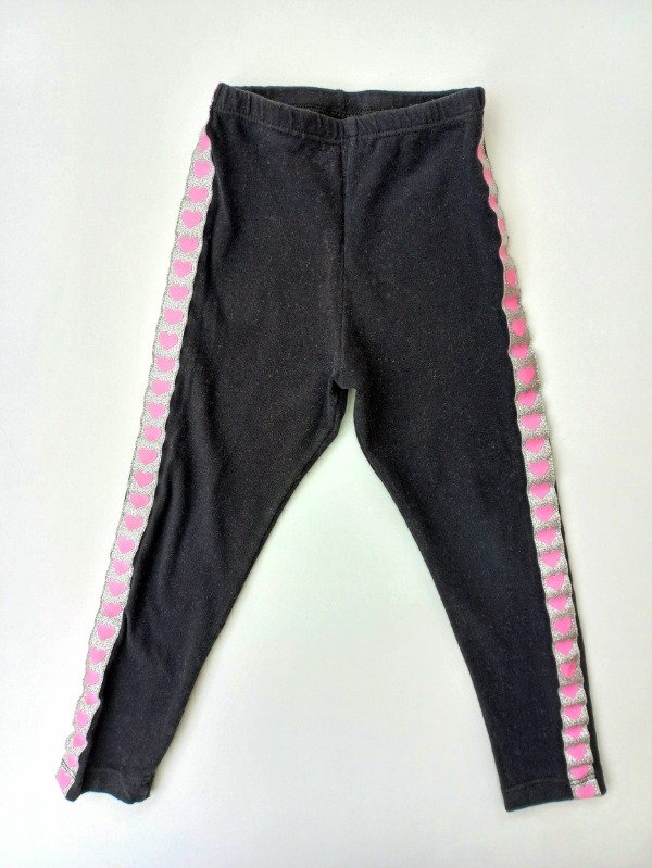 Calza de algodón con color negro con cinta con brillo en los laterales. Talle 2-3 años. Medidas: cintura 18 cm, largo 51,5 cm. COMO NUEVO