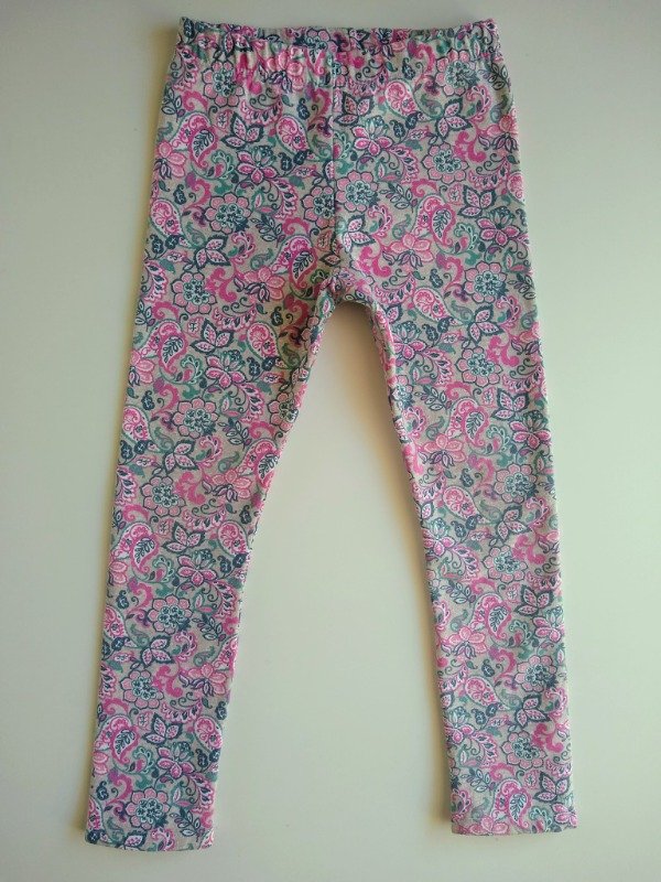 Calza de algodón con friza estampada. Medidas: cintura 27 cm, largo 74 cm. COMO NUEVO