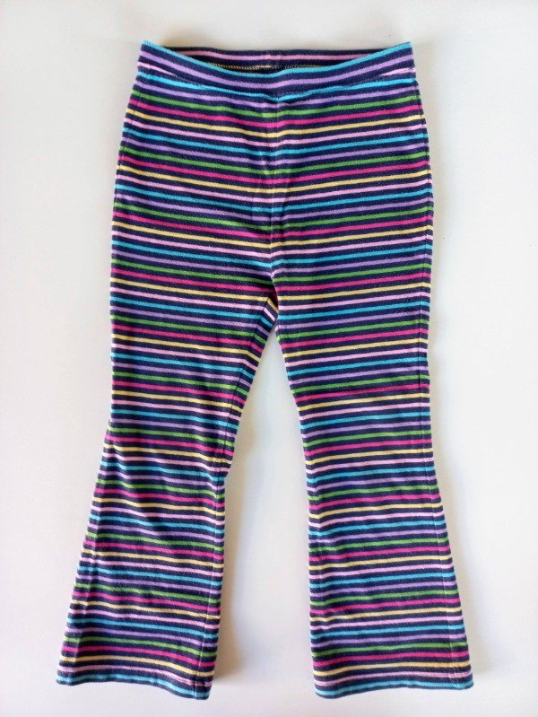 Calza de algodón rayado. Medidas: cintura 23 cm, largo 57 cm, USADO, buen estado