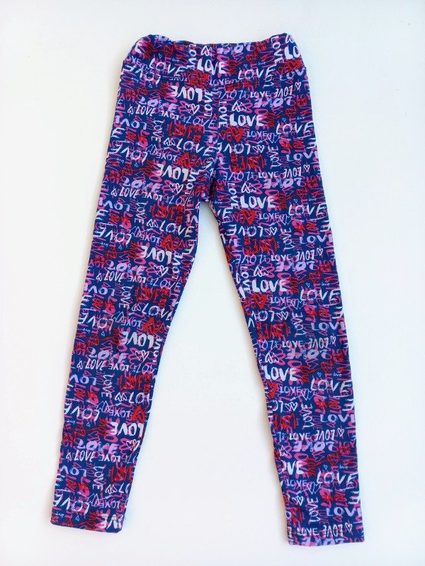 Calza de lycra de algodón con frisa estampada. Medidas: cintura 24 cm, largo 75 cm. USADO, buen estado