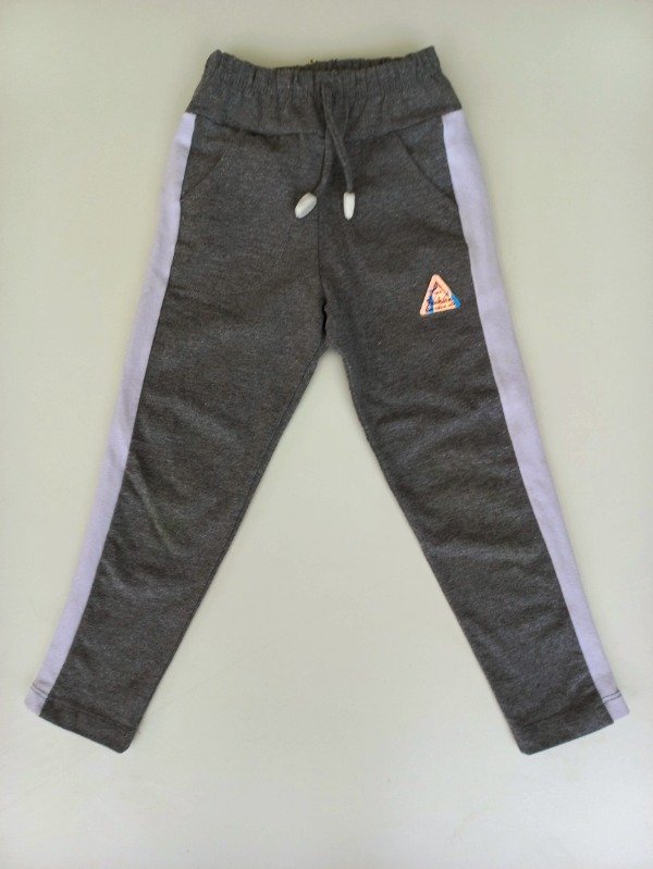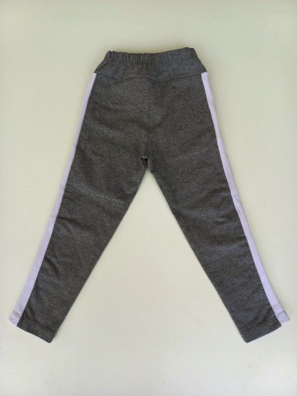 Calza de lycra de algodón color gris melange con franja blanca a ambos lados. Medidas: cintura 17 cm, largo 52 cm. COMO NUEVO