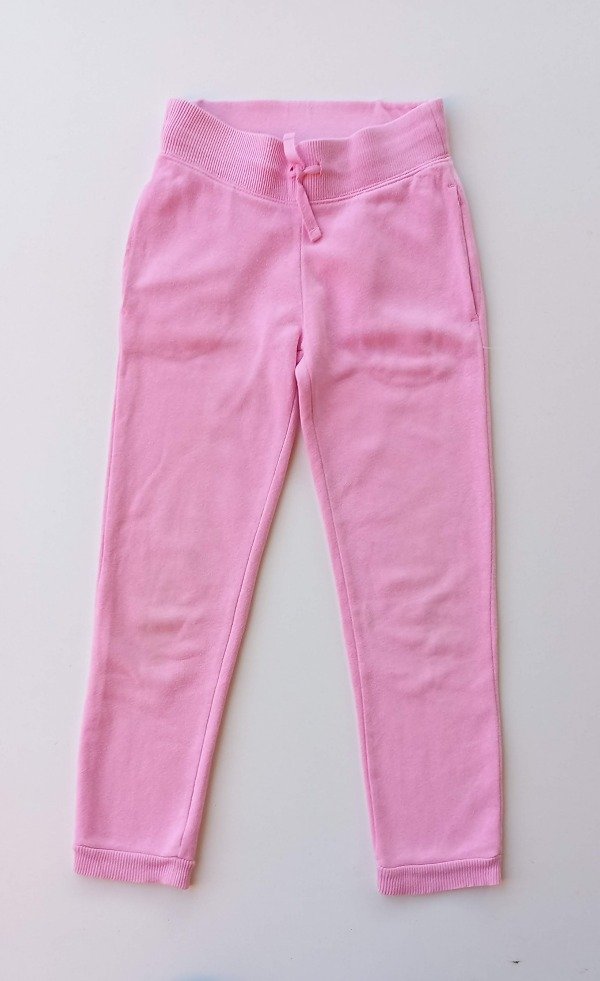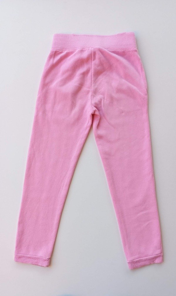 Jogging de algodón con frisa en color rosado. Talle 6-7 años. Medidas: cintura 28 cm, largo 76,5 cm. USADO