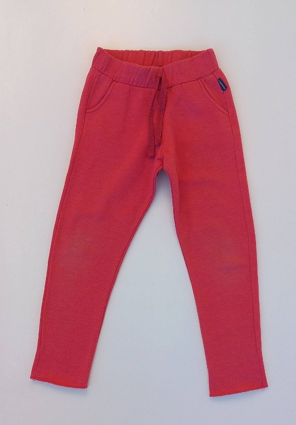 Pantalón jogging de algodón con frisa en color coral. Medidas: cintura 26 cm, largo 71 cm. USADO
