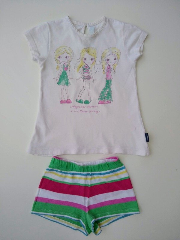 Pijama de algodón compuesto por remera manga corta y short. USADO