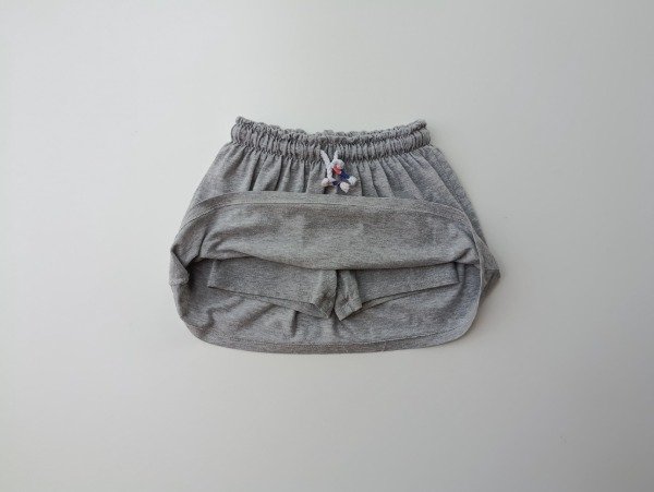 Pollera con short de algodón en color gris melange. Tiene cordón y elástico en la cintura. Medidas: cintura 24 cm, largo 26 cm. USADO