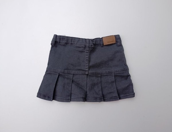 Pollera de gabardina elastizada en color negro, con tablas en la parte inferior. Tiene elástico y botón en la cintura para regular el calce. Medidas: cintura 29 cm, largo 28 cm. COMO NUEVO