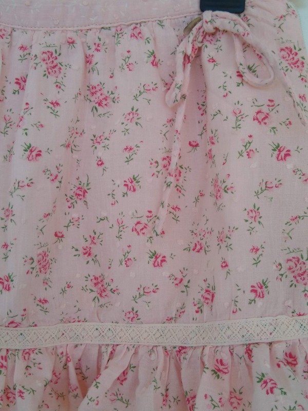 Pollera de poplín estampado, de doble falda terminadas en volados. Medidas: cintura 25 cm, largo 24,5 cm. USADO, excelente estado