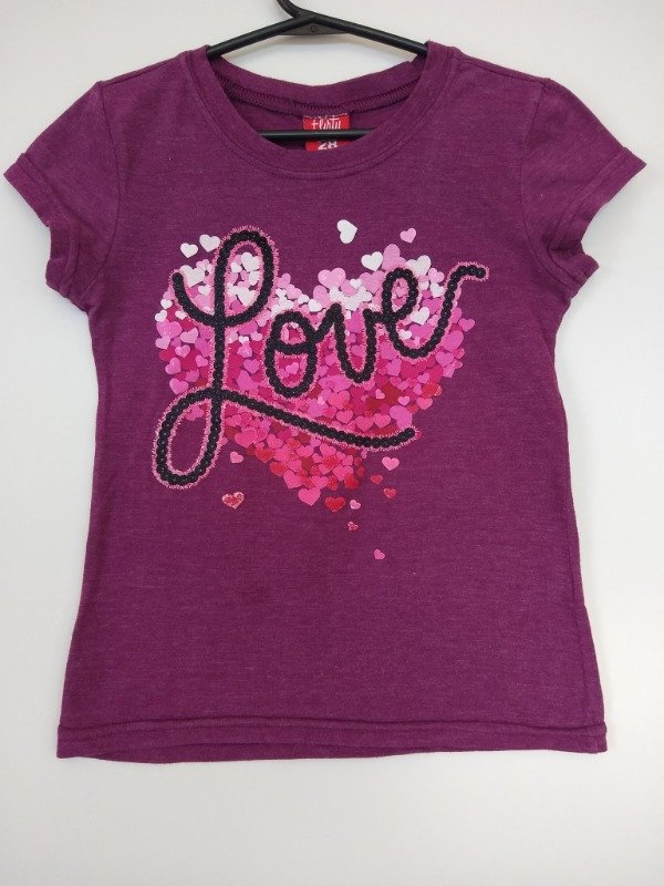 Remera manga corta de algodón con aplique con brillos en la pechera. Medidas: ancho de hombro 30 cm, largo 43 cm. COMO NUEVO