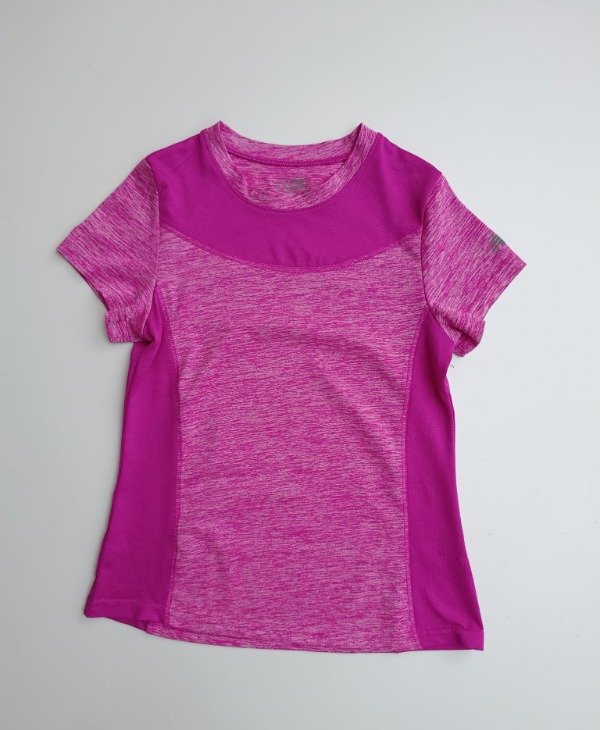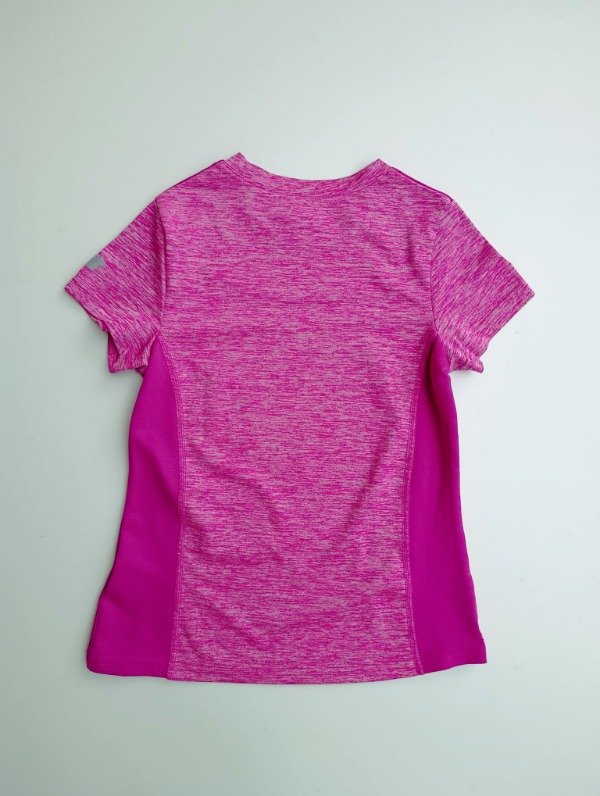Remera manga corta dri fit en color rosa. Talle 7-8 años. Medidas: ancho de hombro 28,5 cm, largo 50 cm. USADO, buen estado