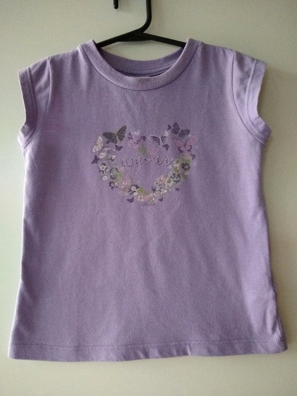 Remera manga corta de algodón color lila. Talle 4/5 años. Largo total 42,5 cm. USADO