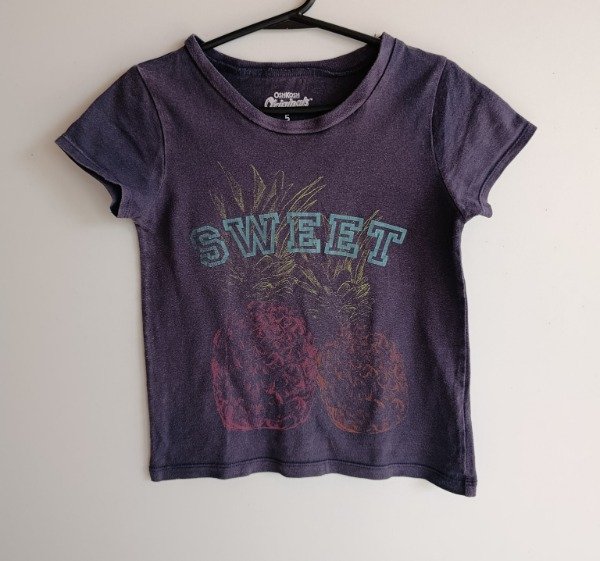 Remera manga corta de algodón en color azul con estampa al frente. Medidas: ancho de hombro 26 cm, largo 41 cm. USADO