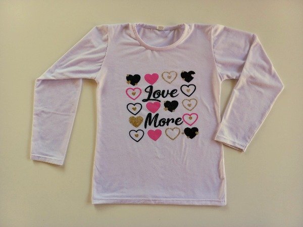 Remera manga larga de algodón color blanco con estampa con brillo. Medidas: ancho de hombro 32 cm, largo de manga 48,5 cm, largo total 54 cm. USADO, buen estado